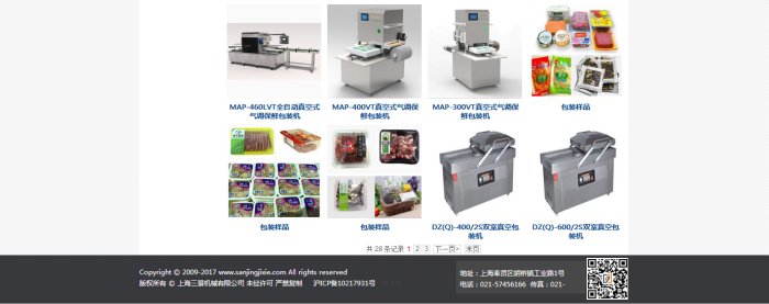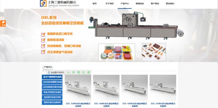 上海三景機械有限公司是一家專注于真空包裝和氣調保鮮包裝的研發、生產和銷售為一體的生產型企業,產品應用于食品、冷鮮肉、果蔬、海產品、休閑食品、醫療產品、電子、科研等多個領域.特別在食品、肉制品、醫藥、海產品、果蔬類的真空及氣調保鮮包裝領域上做出了重要貢獻.主要生產產品有:DZL系列全自動拉伸真空包裝機、MAP系列盒式氣調保鮮包裝機、DZ(Q)系列真空(充氣)包裝機。