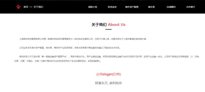 上海昶利投資管理有限公司是一家集投資咨詢及管理服務為一體的綜合性集團公司,注冊于中國上海,運營總部位于上海市黃浦區綠地海外灘.公司業務涉及海外資產配置、微交易、等多塊產業投資領域,目前與多家銀行等金融機構建立了穩定的合作關系。昶利所致力于打造中國“第一高端金融資產管理平臺”,用資本推動產業,用產業穩定金融,積極發揮政策性金融平臺的引領和示范作用,實現產業金融一體化。公司將不斷適應市場新趨勢,以“共有、共享、共贏”為理念,為每一位客戶提供多元化的投資項目和個性化的理財規劃,實現財富增長。