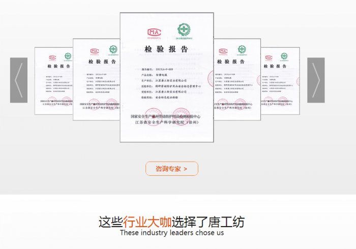唐工紡運(yùn)用國(guó)內(nèi)外先進(jìn)的生產(chǎn)管理技術(shù);利用公司所建立的實(shí)驗(yàn)室的設(shè)備資源;采用的Tangwear系列面料在防蟲防螨、防污防水、色牢度、耐光性、耐油污、耐氯、耐高溫隔熱、隔音降噪、耐紫外線、防靜電、阻燃隔熱、防酸堿、防電弧、防電磁輻射、防核輻射等方面,符合ISO標(biāo)準(zhǔn)、美國(guó)工裝標(biāo)準(zhǔn)、歐洲工裝標(biāo)準(zhǔn)、澳大利亞工裝標(biāo)準(zhǔn)和中國(guó)國(guó)家標(biāo)準(zhǔn)(經(jīng)BTTG、TUV、SGS、ITS、BV、IAWAT和國(guó)家勞動(dòng)保護(hù)用品質(zhì)量監(jiān)督檢驗(yàn)中心(北京)、國(guó)家安全生產(chǎn)北京勞動(dòng)防護(hù)用品檢測(cè)檢驗(yàn)中心、廣東省微生物分析檢測(cè)中心、華東國(guó)家計(jì)量測(cè)試中心等國(guó)家權(quán)威檢測(cè)機(jī)構(gòu)的嚴(yán)格檢測(cè))。