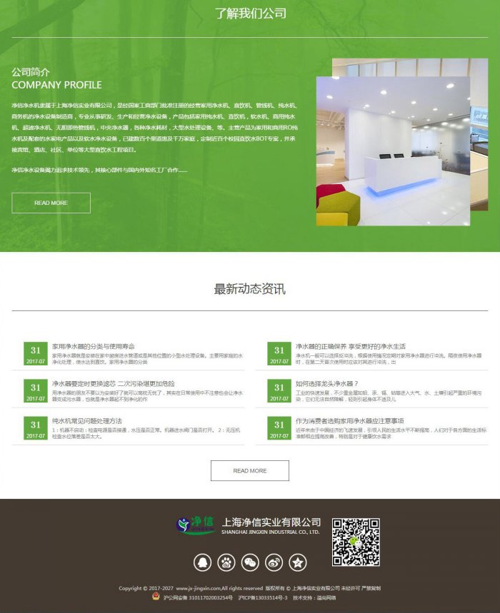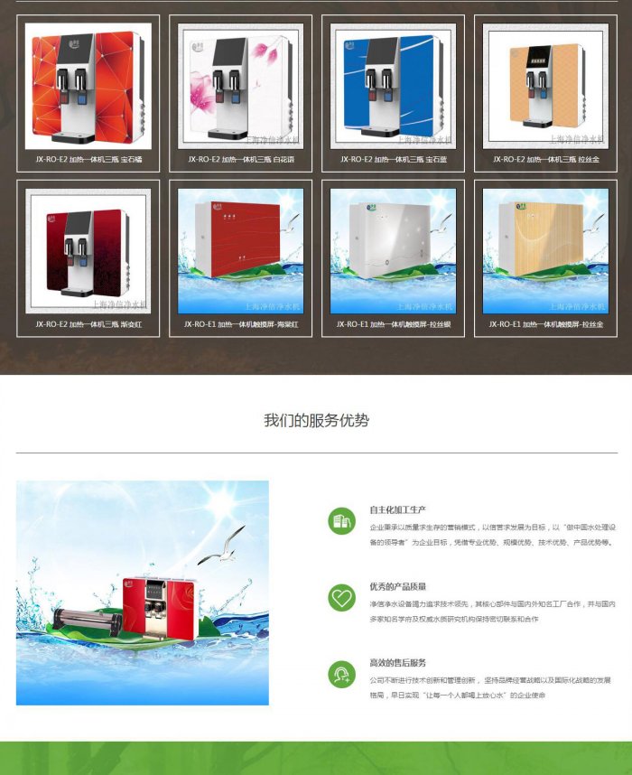 公司介紹:凈信凈水機隸屬于上海凈信實業有限公司,是經國家工商部門批準注冊的經營家用凈水機、直飲機、管線機、純水機、商務機的凈水設備制造商,專業從事研發、生產和經營凈水設備,產品包括家用純水機、直飲機,軟水機、商用純水機、超濾凈水機、無膽即熱管線機,中央凈水器,各種凈水耗材,大型水處理設備、等。主營產品為家用和商用RO純水機及配套的水家電產品以及軟水凈水設備,已建數百個渠道惠及千萬家庭,定制近百個校園直飲水BOT專案,并承接賓館、酒店、社區、單位等大型直飲水工程項目。