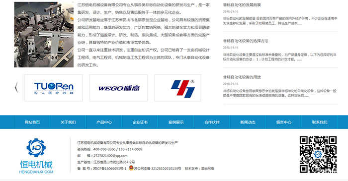 江蘇恒電機(jī)械設(shè)備有限公司專業(yè)從事各類非標(biāo)自動(dòng)化設(shè)備的研發(fā)與生產(chǎn),是一家集研發(fā)、設(shè)計(jì)、生產(chǎn)、銷售以及售后服務(wù)于一體的多元化企業(yè)。公司研發(fā)基地坐落于江蘇省昆山市北部原創(chuàng)型企業(yè)基地,公司具有較強(qiáng)的資源集成和運(yùn)用能力,雄厚的研發(fā)實(shí)力、廣泛的營銷網(wǎng)絡(luò)、強(qiáng)大的資金實(shí)力和項(xiàng)目融資能力,形成了涵蓋設(shè)計(jì)、研發(fā)、制造、系統(tǒng)集成、大型設(shè)備成套等方面的完整產(chǎn)業(yè)鏈,具備獨(dú)特的產(chǎn)業(yè)價(jià)值和市場競爭優(yōu)勢。公司一直以來注重技術(shù)研發(fā),注重自主知識產(chǎn)權(quán)。公司已培育了一支由機(jī)械設(shè)計(jì)工程師、電氣工程師、機(jī)械制造工藝工程師為主體的團(tuán)隊(duì),專門從事自動(dòng)化設(shè)備的研發(fā)工作。 公司主要業(yè)務(wù)包括:軟管裝配與扣壓自動(dòng)全自動(dòng)化生產(chǎn)線,密封測試設(shè)備(氣密檢測設(shè)備,水密檢測設(shè)備),電子元件包裝機(jī),非標(biāo)自動(dòng)化裝配檢測生產(chǎn)線 。