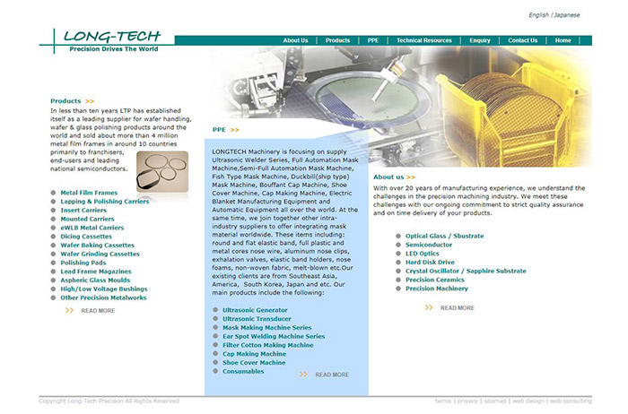 公司簡介:Long-Tech Precision Machinery Limited(LTP) is a leading manufacturer, supplier and exporter of high precision products and services for Semiconductor, Optics, LED, Sapphire Substrates, HDD, Mobile Cover Glass / Glass filter, and Ceramics.