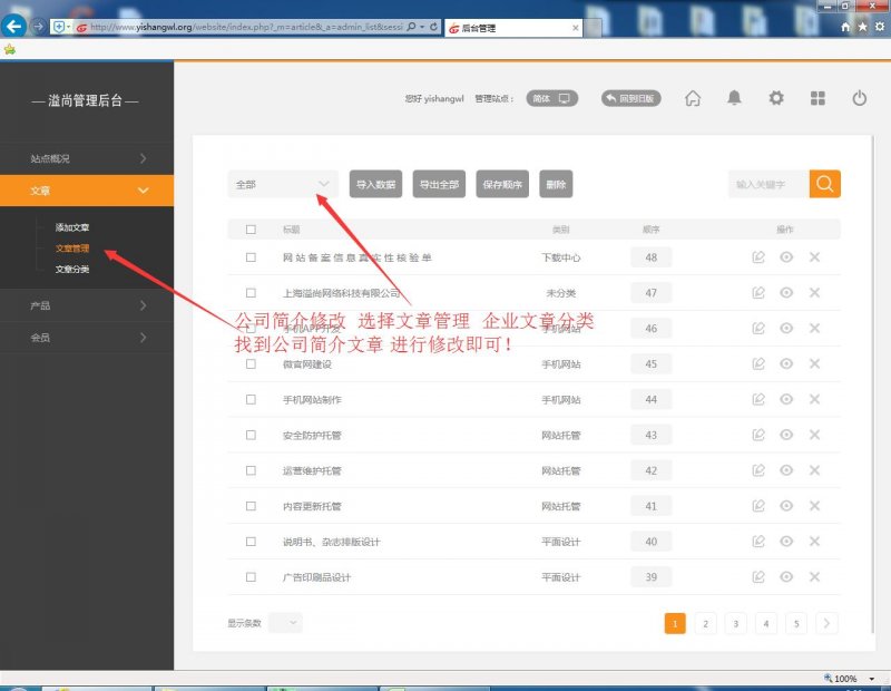5.公司簡介修改,點擊文章管理,找到公司簡介文章,然后進行修改即可